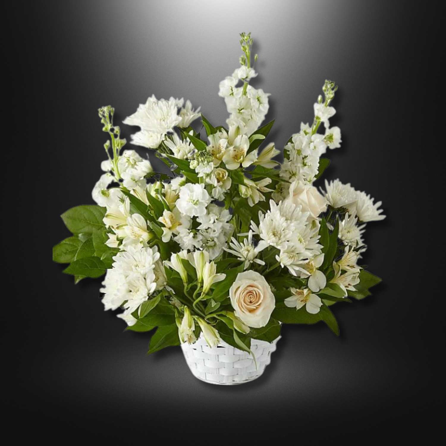 The Eternal Affection Arrangement is a graceful expression of everlasting love and heartfelt sympathy. Featuring a serene blend of pristine white roses, delicate lilies, and soothing greenery, this arrangement is meticulously crafted to convey comfort and solace during times of mourning. Its timeless beauty serves as a poignant tribute, honoring cherished memories and offering a gentle embrace of support and compassion